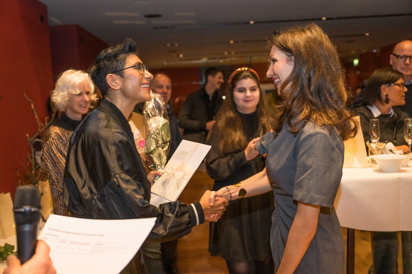und kündigte sechs besonders herausragende Abschlussarbeiten an, die an der Feier geehrt wurden: