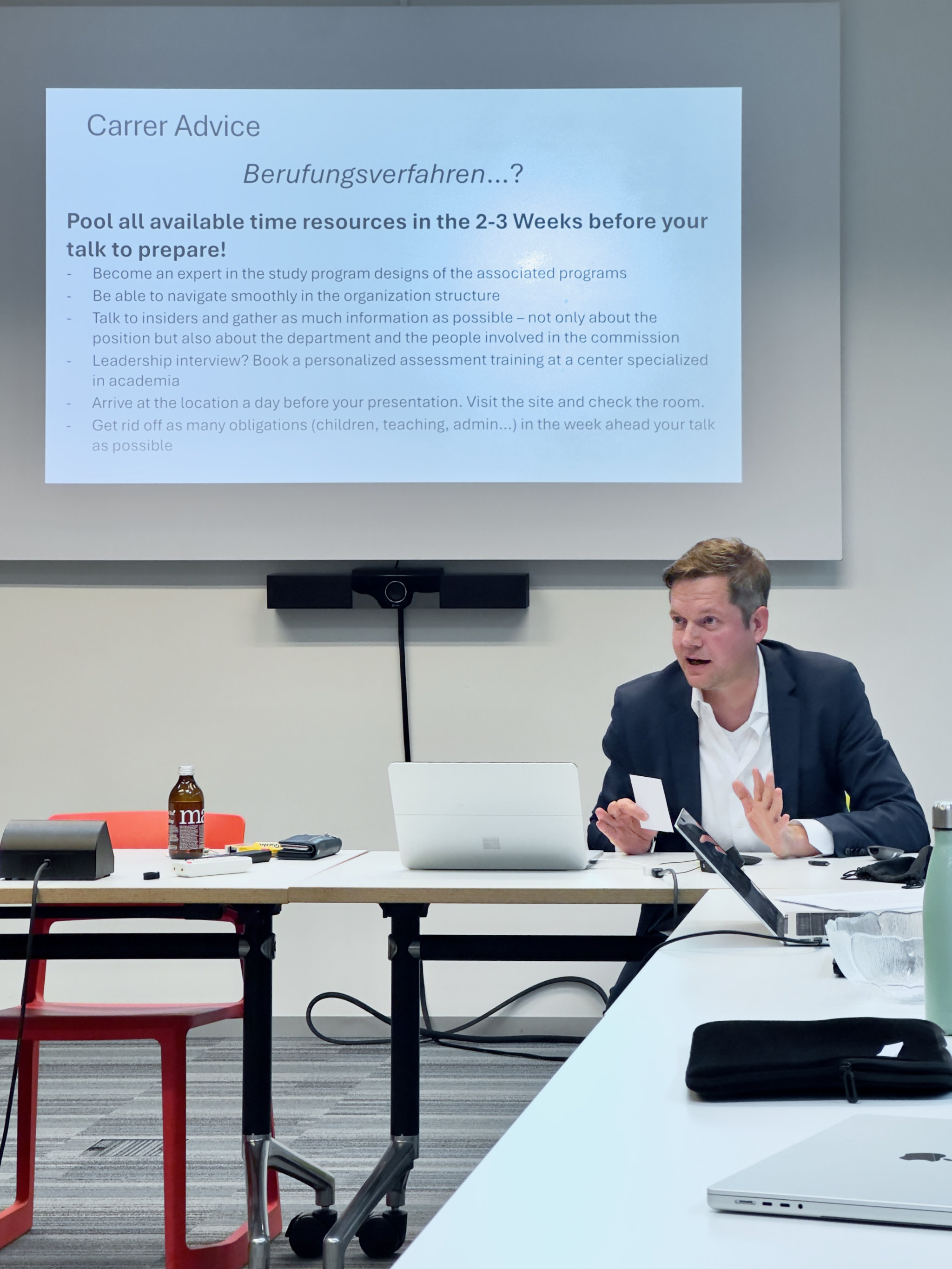 Already having gone through the experience of «Berufungsverfahren», he spoke about the importance of thorough preparation for the application process, and shared insights on how performance in these interviews can significantly influence career outcomes.