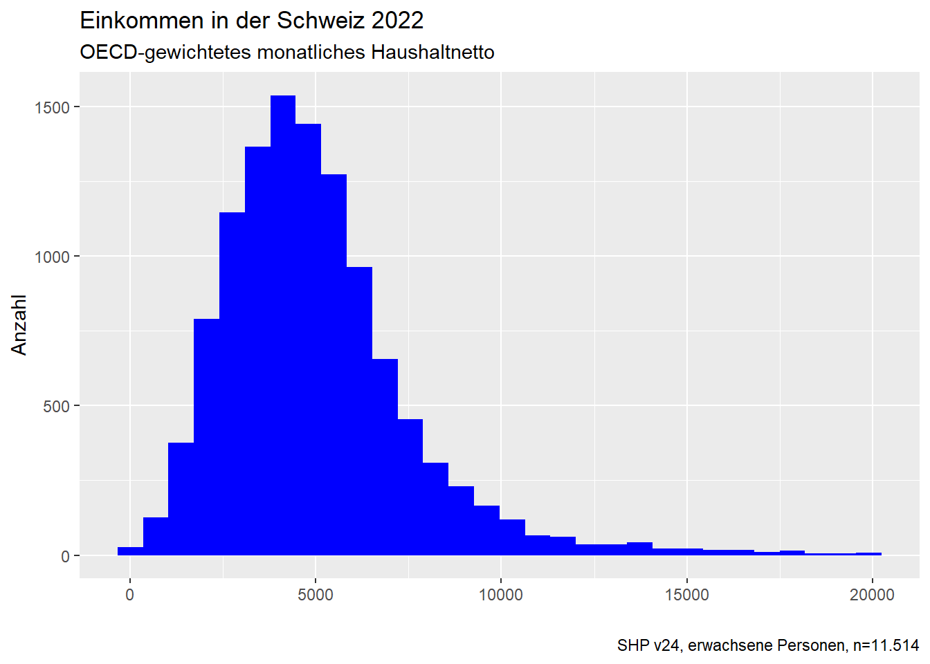 Achtung: Die Parameter in den Funktionen des Befehls müsst ihr meist durch Probieren aufeinander abstimmen. Dies gilt auch für die “theme”-Anweisung im Plotbefehl, mit dem Ihr die Textgrösse passend zum Format ausrichten könnt. Ein Problem ist beispielsweise, dass es keine Option gibt, die Beschriftungsgrösse automatisch an die Ausgabegrösse der Abbildung anzupassen - sie wächst bzw. schrumpft also nicht automatisch mit (sondern muss manuell angepasst werden) wenn ihr die absoluten Seitengrössen eurer Abbildung verändert.