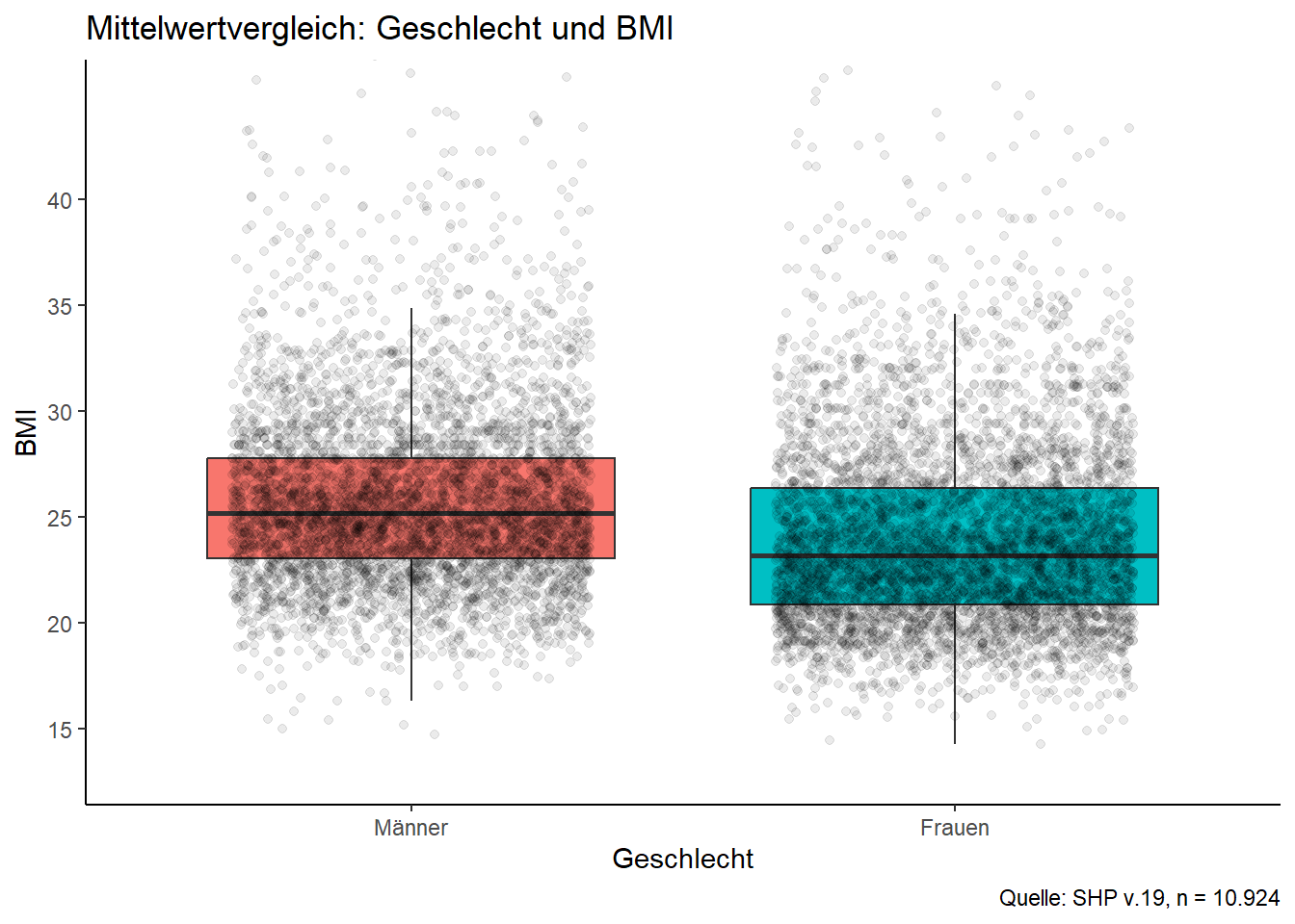 • Speichern der Abbildung z.B. mit ggsave. Dieser Befehl nimmt automatisch Bezug auf die letzte angelegte Grafik. Die Abbildungsdatei befindet sich dann automatisch in eurer Working Directory. Dies ist per Default der Ordner, in dem der Syntax-file gespeichert ist, über den ihr R steuert.