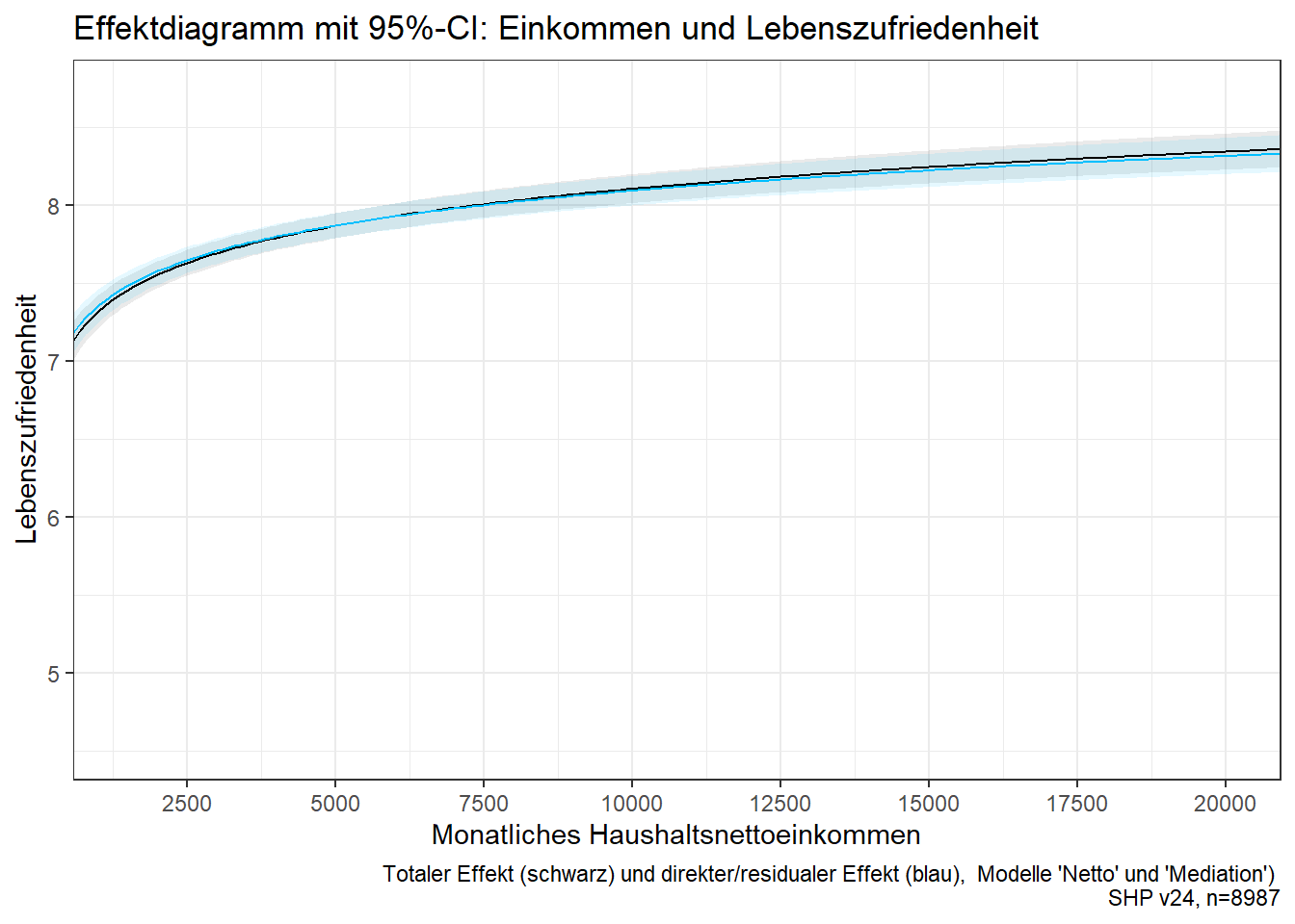 labs(title="Effektdiagramm mit 95%-CI: Einkommen und Lebenszufriedenheit",