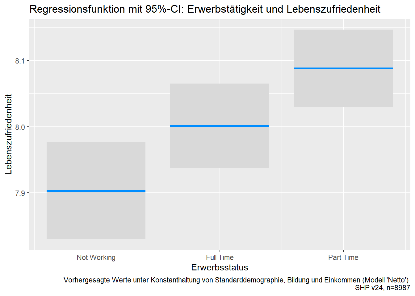vis3+labs(title="Regressionsfunktion mit 95%-CI: Erwerbstätigkeit und Lebenszufriedenheit",