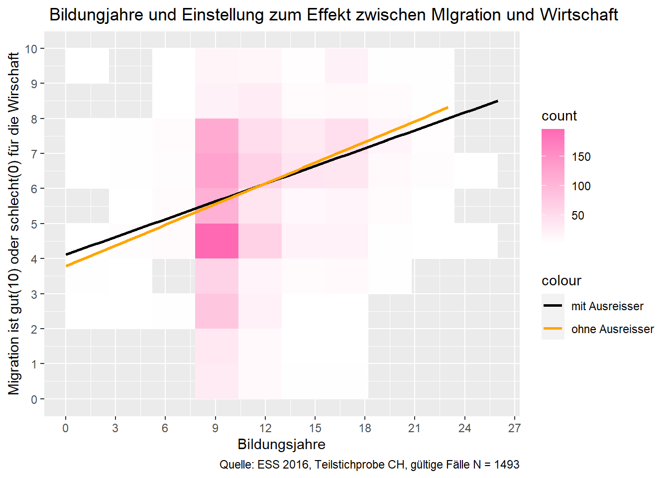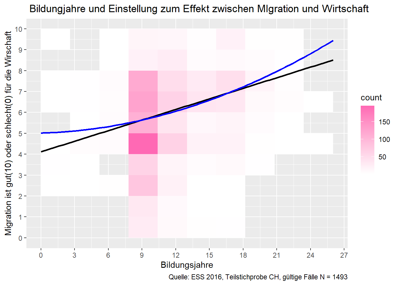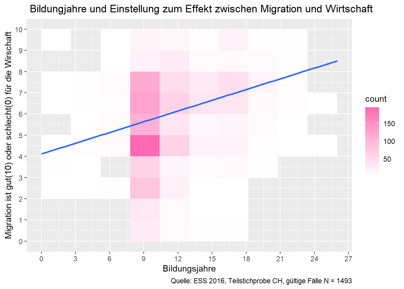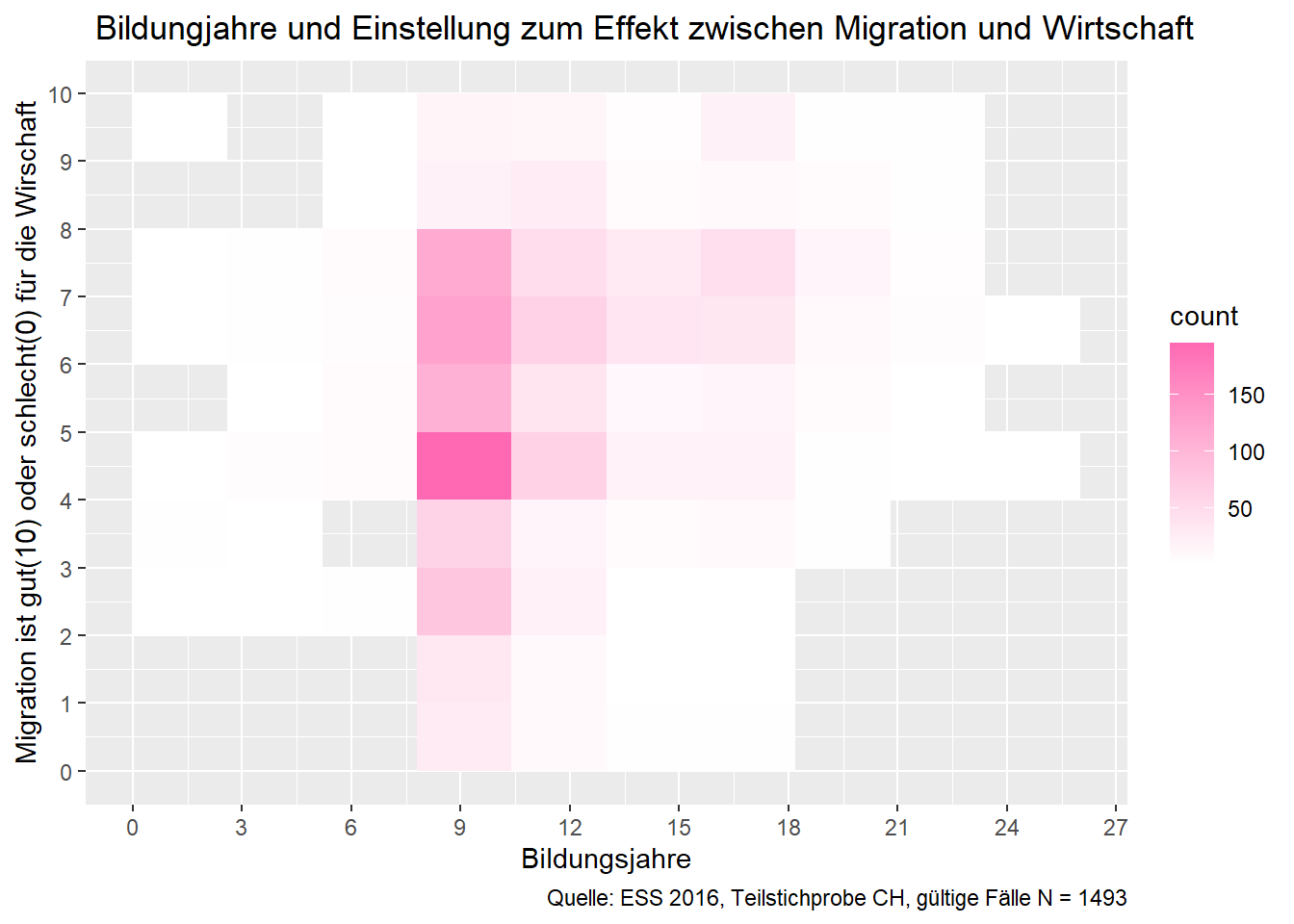 heatplot <- ggplot(ess8.CH, aes(x = bildung, y = meinung_mig)) +