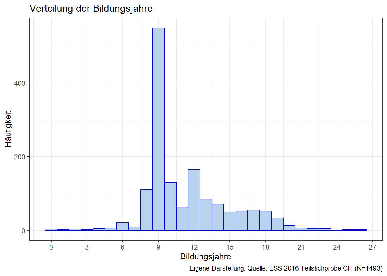 labs(title="Verteilung der Bildungsjahre",