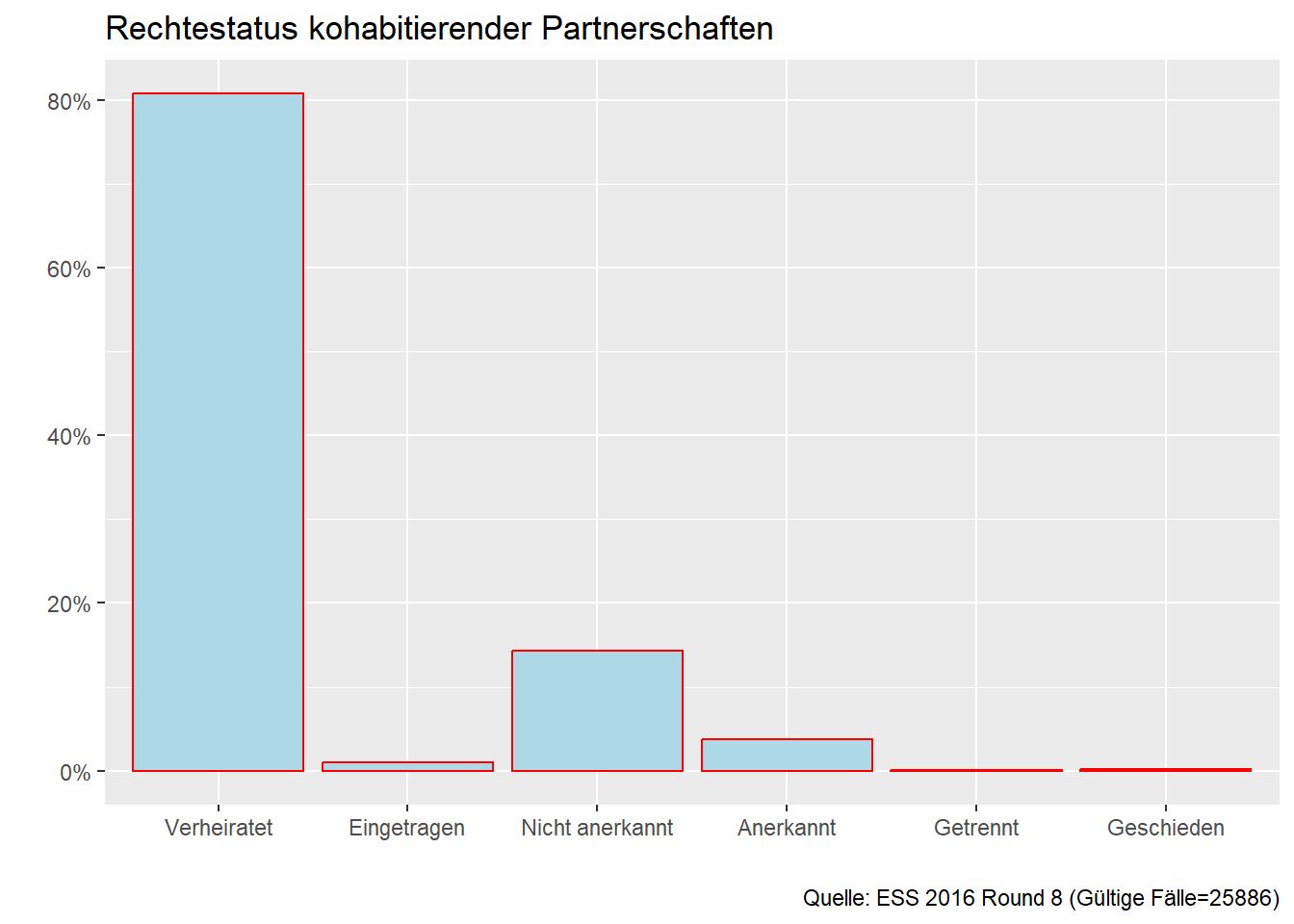 labs(x = "", y = "",title = "Rechtestatus kohabitierender Partnerschaften",caption = "Quelle: ESS 2016 Round 8 (Gültige Fälle=25886)") +