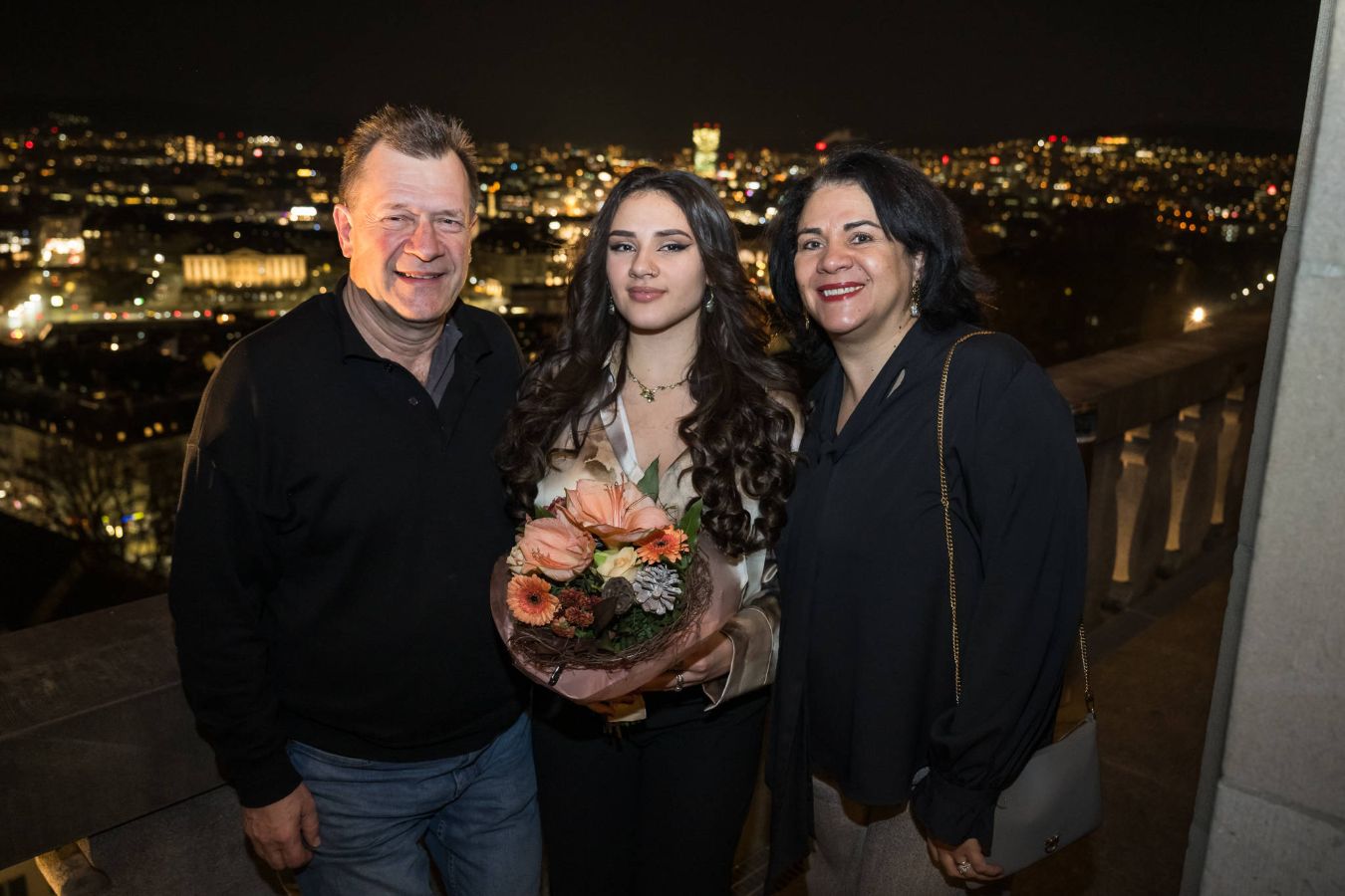 Mit wunderschöner Aussicht auf die Winterlichter der Stadt Zürich wurde auf die diesjährigen Absolvent:innen angestossen.