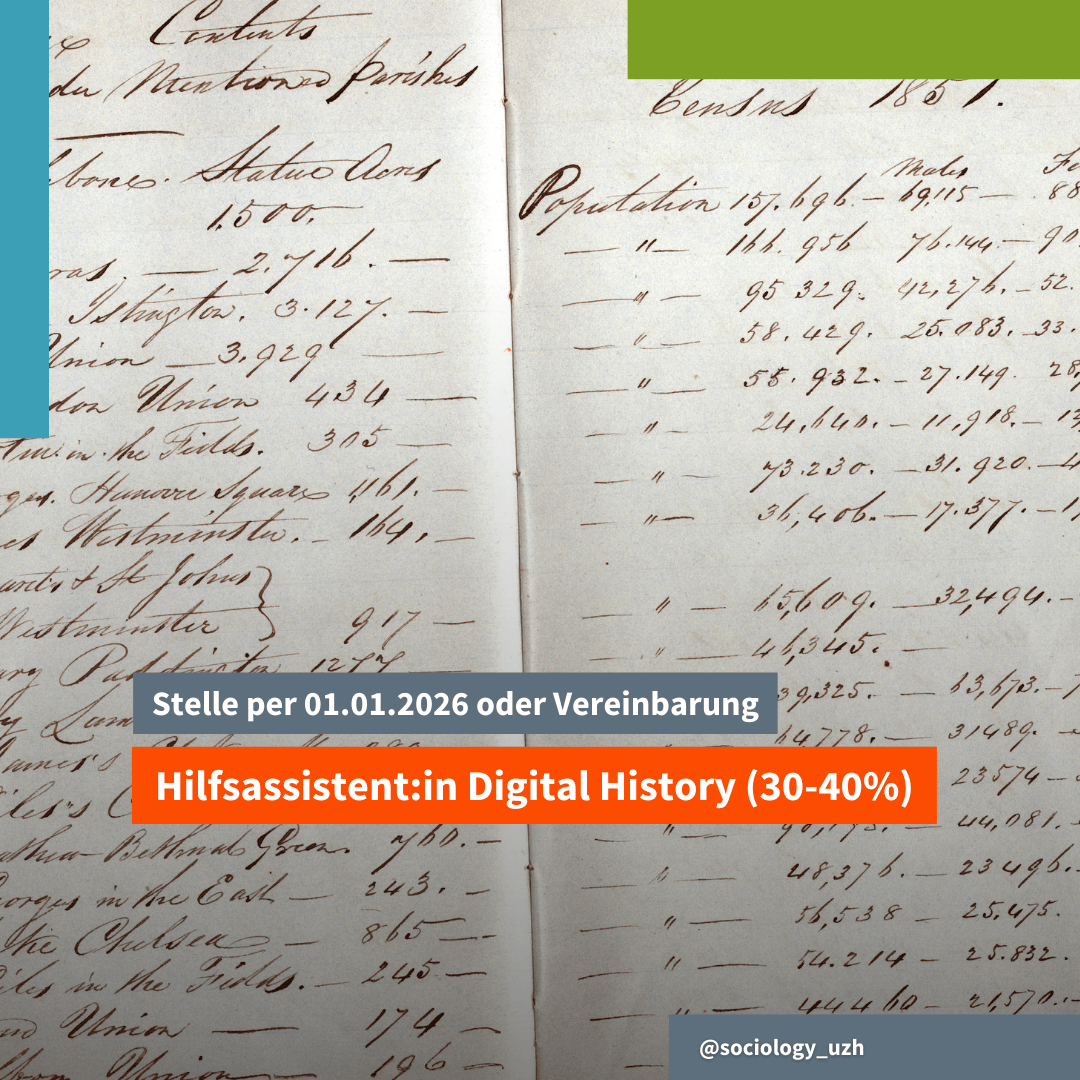 Das SUZ sucht per 1. Januar 2026 oder nach Vereinbarung Studierende im Master (oder fortgeschrittenen Bachelor) in einem sozial-, geistes- oder kulturwissenschaftlichen Fach. Das gesamte Stelleninserat: